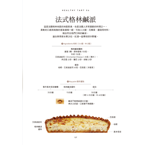 ●完整示範精選代表塔派,包含:鮮水果塔派11種、健康鹹塔派8種、法式經典塔派6種。