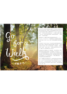 這本書有許多精心設計的圖片,眾多美麗的圖看起來賞心悅目。作者從自然、睡眠、旅行、人際關係、工作、孩子、創造力與飲食等八大面向提供許多小確幸的淺嚐,書中呈現的風格與時下流行的跳tone風很像,重視的不是邏輯與實踐,而是感覺不錯就試試看。