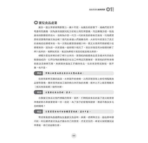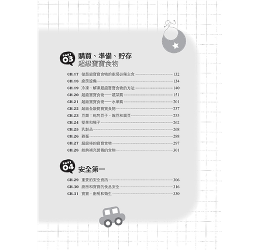 本書告訴您:(1)如何製作營養健康的寶寶食物。(2)如何準備過敏寶寶的食物。(3)如何才能安全貯存寶寶的食物,監控寶寶的營養攝取。(4)如何避免有害食品添加劑和防腐劑的事物。