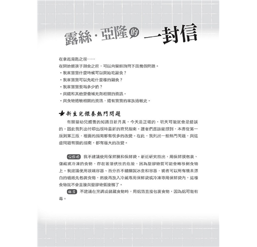 本書除有讓寶寶健康成長的育兒方法與細節外,更包含多項重要新訊息: