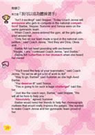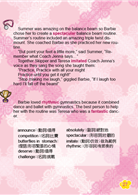 芭比和她的朋友們都是體操隊的成員。這天,她被教練指定為全國體操錦標賽的參賽選手之一!在興奮之餘,芭比很清楚比賽的競爭非常激烈,她必須不斷練習,配合教練和朋友們的幫助,才能順利贏得比賽。