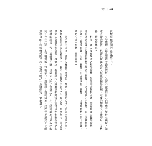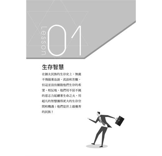 本書以猶太人在世界各地流散逃難的長遠過程中,融合並吸收了其他民族的智慧精髓,用來開創自己的生存空間。以融合和實踐各民族優秀之智慧為基礎,猶太人在生存、處世、生活、財富、經商、談判、婚姻、教育、信仰、幽默等方面創造並發展成屬於自己獨特又非凡的猶太智慧。這就是猶太民族發展過程中最為偉大、最為神奇的力量。