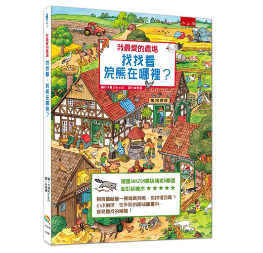 本書收錄各種農場的風光:母牛產牛乳、採收蔬果、收割穀物、犁田、夜晚舉辦慶典、冬天堆雪人、妝點聖誕樹,熱鬧不已!隨處可見的頑皮動物和孩子們的惡作劇,像:戴墨鏡兜風的小狗、叼走襪子的小鳥、乘坐紙船的小老鼠、畫成斑馬的馬……,保證讓你的探索過程充滿歡笑與樂趣。