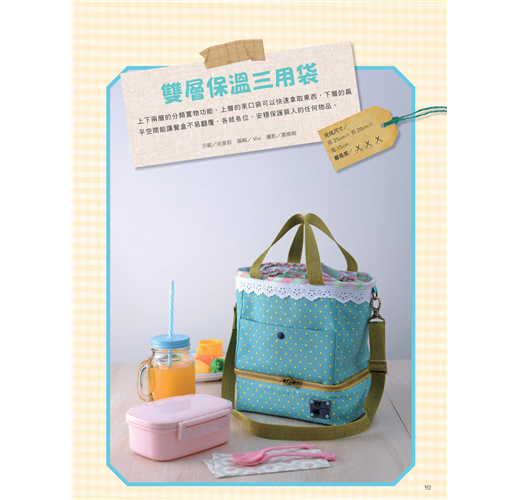 外出時攜帶保溫袋,尤其在帶有涼意的季節,就能隨時入口溫熱的食物及飲品,還能替他人送上一份溫暖,不僅暖了身體也可以溫暖對方的心。本次單元收錄直立式有袋蓋的輕巧保溫提袋、便利好用的束口式好事保溫便當袋、隔間分明又好用的雙層保溫三用袋、拉鍊封口式的快樂白熊保溫提包。多款吸引人的保溫袋選擇,不論學生或上班族都要開始實行健康又衛生的帶便當生活吧!