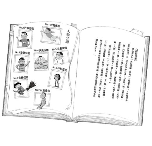 一位怪咖老師,外加十四個小小怪咖,還有,絕對不能漏了每一堂課後的怪咖校長補述;故事後頭,怪咖校長都幫孩子補進各種有趣的小知識,例如:貝多芬每天要數六十顆咖啡豆、「最不安全密碼」第一名是123456;例如:乾隆皇帝愛蓋印章,他竟有