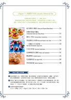 傳統英式下午茶三層點心架,最下面一層是三明治和其他鹹點,中間是司康和餅乾,最上層是各式蛋糕和甜點,本書43道甜點+42道鹹點+10道醬料+5道飲料一次教給你。最特別的是Amy還教你做各式醬料,貼心地告訴你利用醬料還可以做出更多變化的茶點。而下午茶不只可以喝紅茶,還可以搭配咖啡、奶昔或調酒,就讓Amy告訴你英國人常喝的下午茶飲料。