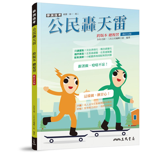 (1)重點整理:採取「左頁基礎,右頁進階」的編排方式。左頁的重點整理是學測、指考喜歡考的基礎概念,熟讀之後就能掌握基本分。右頁則是較不常考、偏難或補充的概念,唸完之後就能從基本分邁向頂尖高分。