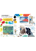 藝術並不像一般人所想像的,只是畫畫、做雕塑,或是欣賞美麗的事物。藝術隨著人類的誕生而誕生,並且隨著文明的洪流不斷的生成、演化與變遷,累積了深厚的內涵、豐富的意義與多元的樣貌。向孩子們介紹藝術,過度簡化則無法管窺其浩瀚,過度複雜又恐怕他們望之卻步。這本由多部暢銷童書作者、曾經在巴黎學習藝術的蘿西‧狄金絲撰寫的《我的藝術啟蒙大發現》,便試圖克服上述問題,用最簡單的方法介紹最深奧的藝術。全書共分成七大部分:從強調藝術定義的多元與介紹藝術世界的千變萬化,到揭開藝術創作中材料與技法的奧祕;再分別針對色彩、動態與光線,這三個藝術作品的重要形式要素進行分析,緊接著探究藝術作品的題材與意義;最後,還廣博的觸及了博物館學,並建立了一個藝術小辭庫。以如此專業的方法、嚴謹的架構與豐富的內容引導孩子們進入藝術,竟然僅用了簡潔的頁數即完成,並且以巧妙的小翻頁給予細節性的說明,大大增加了本書的趣味性與可讀性。