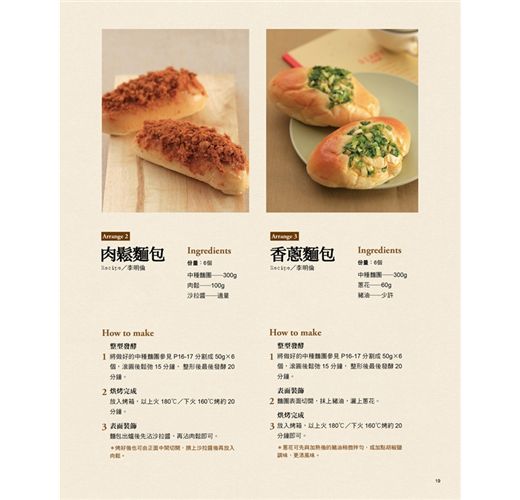 基本白麵團變化出令人垂涎的蔥花、肉鬆麵包,