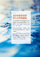 Clare 和 Charles 已經利用發展多年的方法去教導人們如何記錄自然事物。不論哪個季節,也不管你的目標是什麼,使用這本書將指引你如何為大自然寫日記,你也可以從其他業餘者或專業的作品中學習各項技巧。藉由創作自己的自然筆記,你可以經歷一趟生機無限卻寧靜安穩的冒險之旅。不論哪個季節、天氣如何,或是身在何處,它都能使我們放慢腳步,去觀察、省思、並重新投入那彷彿活生生鑲嵌畫的大自然懷抱。