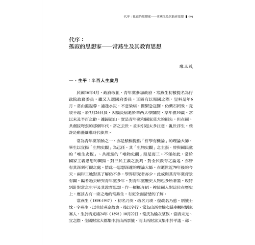 代序: 孤寂的思想家―常燕生及其教育思想/陳正茂