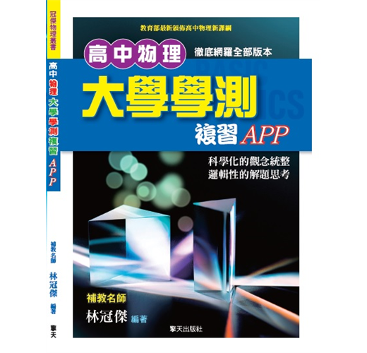 清楚的物理觀念才能達成解析題目的挑戰。筆者衷心地建議讀者們,先完整地精研每個單元的重點精髓後,再著手應試該單元的功力提昇試題與歷屆學測試題。並配合各校聯合舉辦的大學學測模擬考試命題範圍,一一完成各單元的精密複習。期望讀者們專注研讀本書,以達到物理高分的絕對功效!
