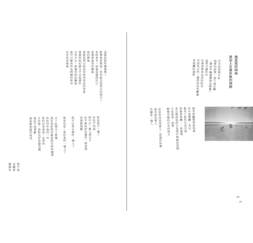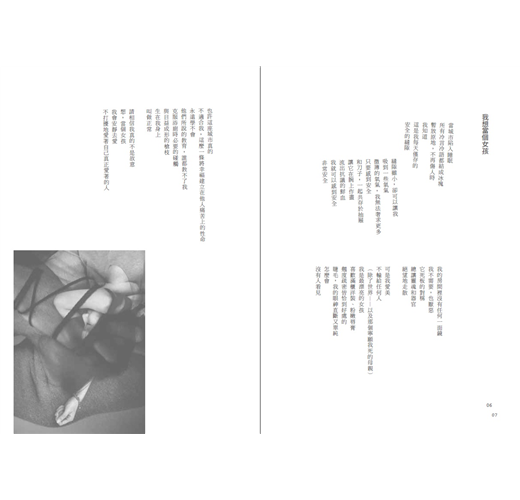 不過,面對一個作者的首部作品,我還是比較喜歡自剖式的,用絕對的,會或不會,想或不想的口吻來寫的詩,比如〈我想當個女孩〉、〈不願成為更好的人──寫給政大四年〉、〈請幫我成為我〉、〈吹泡泡〉,慷慨的情調,暗藏著她的冷眼自若。如果說,有些人尋找安全感的方式是做夢,她像是挖地雷,向自我,各種相背與相迎的關係,向社會與生命疏離的縫隙裡挖掘。如果你願意,看她一顆接一顆的挖,或自行引爆,那些生活中,各種時光與夢的地雷。