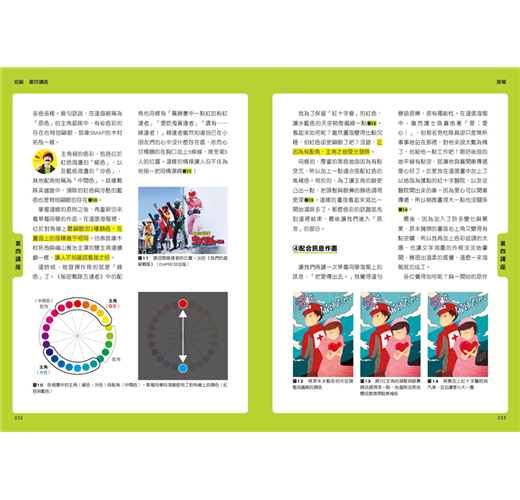 主角級的色彩,包括位於紅色周邊的「暖色」,以及藍色周邊的「冷色」,其他配角則稱為「中間色」。就像戰隊英雄當中,領隊的紅色與冷酷的藍色也是特別顯眼的存在。(圖10)