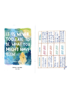 這本書鼓勵讀者停止尋找,也不要再等待了,就從自己現在所在的地方開始。本書要讀者好好探究自己內心,書中引導讀者思索的問題會幫助讀者發現更多關於自己的事,例如:真正愛的是什麼、對什麼有熱情、如何看待自己、覺得別人如何看待自己等等。除了書中的小練習之外,作者還放入各種的名人語錄,用她著名的手寫體風格呈現。――亞馬遜讀者Rebecca