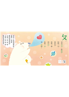 每個注音符號以識字為目的創作一首兒歌,並以顏色標示每首兒歌所練習的注音單字,輕鬆記憶學認字,還有注音符號筆順,提供孩子描寫練習。書後附有注音符號表,掃描QRcode就能學會正確發音喔!