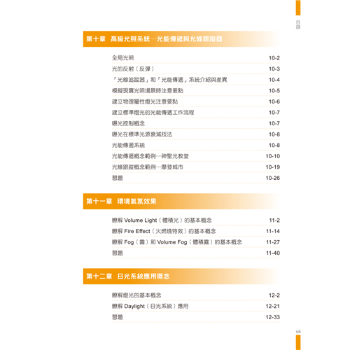 全書共12章,完整介紹運用3ds Max進行空間設計的技法,透過7款不同空間設計範例,講解3D幾何物件建模、2D曲線建模、物件的材質設定、攝影構圖與運鏡及基礎燈光設置等,同時為配合空間設計主題。本書在燈光設置上加入光度學燈光、高級光照系統及日光系統應用,幫助讀者透過更細緻的燈光設定,完成更真實的空間設計作品。