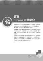 遊戲開發需要使用的技術範圍相當廣泛,除了多媒體音效、圖片動畫,程式設計應用更是其中的核心。PyGame是為了讓Python能夠進行遊戲開發工作所發展出來的套件,它能幫助Python控制音效音樂、圖片動畫,並進行程式的運作,是一個十分強大,功能完整的套件。