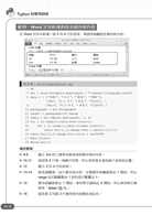 Python迴圈命令有2個:for迴圈用於執行固定次數的迴圈,while迴圈用於執行次數不固定的迴圈。串列與其他語言的陣列(Array)相同,其功能與變數相類似,是提供儲存資料的記憶體空間。元組(Tuple)的結構與串列完全相同,不同處在於元組的元素個數及元素值皆不能改變。字典(Dict)的結構也與串列類似,其元素是以「鍵- 值」對方式儲存,這樣就可使用「鍵」來取得「值」。