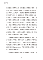 「繼承」是一種藝術,它可以是師法於人,因為人要學習的大部份是人所建立的(少部份才是神所建立的),在筆者二十年的職業生涯期間,對於累積及程序的重要性有相當多的感觸,因而寫了這本書,不只適用於專案經理,一般的職場工作者也適宜。以工作者的觀點詮釋工作的難處,以管理者的觀點說明管理者的困境;本書也融合了一些物理世界前人已觀察到的論點,探究出為什麼事情的發展應該是這樣。相信大家在內容中應該會看到自己工作的影子而心有戚戚焉,也希望在這本書上可以帶給你/妳一些不一樣的職場工作觀點。