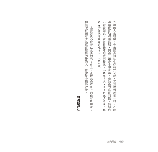 基督徒的靈修生活猶如一趟旅程,在航行途中難免出現危機與挑戰,例如偏離航道、迷失方向、遭遇風浪、船隻失去動力等。有些人不知所措地困在原地打轉,或是安於現狀、隨波漂流,不願突破與改變。耶穌透過這些危機,邀請你我「划向深處」,穿越信仰的考驗,勇敢追尋靈性生命的成長,成為完美、成熟的基督徒。