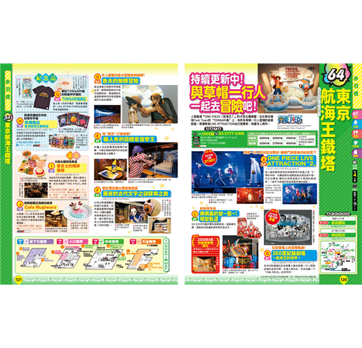 東京車站內匯集多元的伴手禮商店;丸之內則是咖啡廳林立。日本橋有許多老店,還不知道要帶什麼樣的伴手禮回去?來這裡就對了!在東京鐵塔Foot Tow的TONGARI島上更有許多航海王的相關遊樂設施,從舞台表演、360度環繞巨場到主題餐廳,應有盡有,一起加入草帽一行人的航海冒險吧!