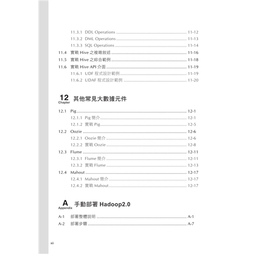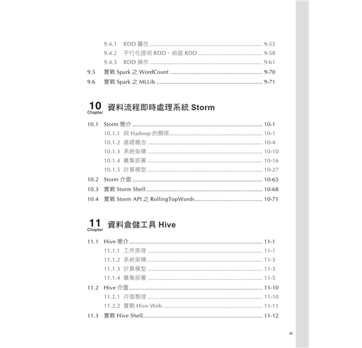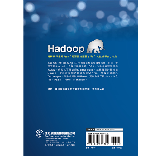 本書系統介紹Hadoop 2.0生態圈的核心和擴展元件,包括:管理工具Ambari、分散式檔案系統HDFS、分散式資源管理器YARN、分散式平行處理MapReduce、記憶體型計算架構Spark、資料流程即時處理系統Storm、分散式鎖服務ZooKeeper、分散式資料庫HBase、資料倉儲工具Hive,以及Pig、Oozie、Flume、Mahout等。