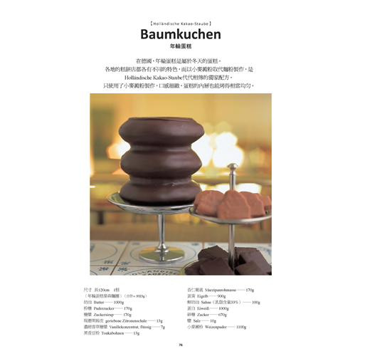 德國甜點的蛋糕基底種類繁多,例如:柔軟綿密的海綿蛋糕底、充滿堅果或巧克力香味的蛋糕底、酥脆爽口不黏膩的餅乾基底、經由酵母發酵過後的輕盈蛋糕底……其中最具特色的是,從中世紀流傳至今,以香氣溫和的蜂蜜混合充滿味覺刺激的香辛料製作而成的香料蛋糕底。而外型好似年輪,是現今德國甜點代表的年輪蛋糕,則是以層層疊疊的蛋糕底所組成。在日本,不只年輪蛋糕大受歡迎,許多德式甜點也同樣流行。許多日式洋菓子都帶有德式甜點的影子,像是最經典的草...