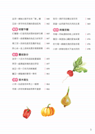 你已經有了吃當令食材的概念,卻不知道該煮些什麼嗎?從挑選訣竅、到搭配宜忌,養生主婦實作的最佳小memo,獨家收錄極簡單易學的「時令recipe」,將成為讀者日常三餐的參考菜單,菜色變換的靈感來源,烹飪時刻不再一個頭兩個大!