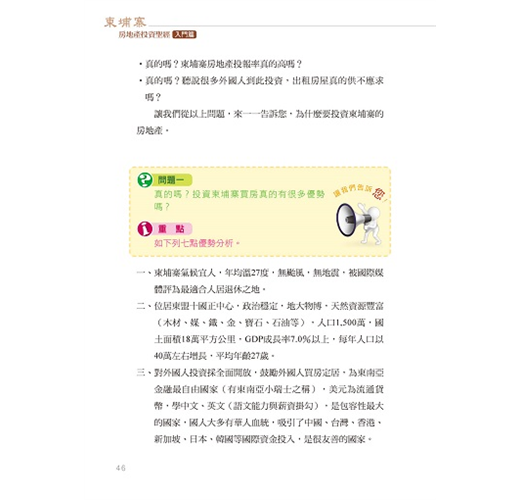 ◎精準剖析投資柬埔寨房地產前、中、後的利基與挑戰。
