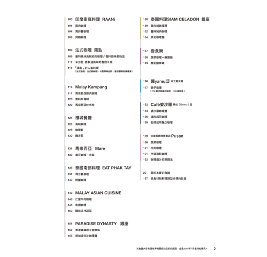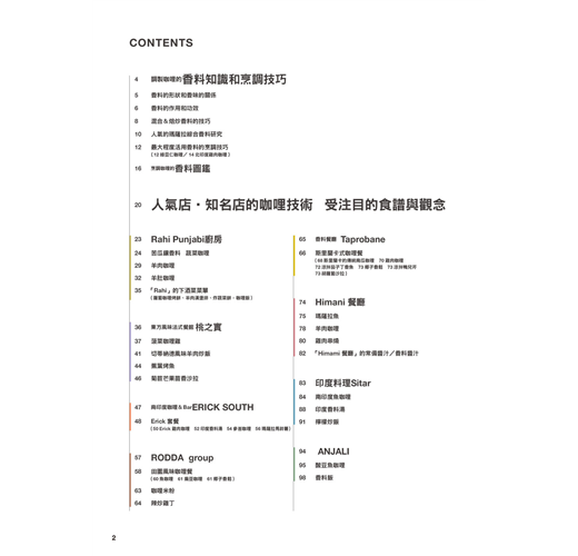 在這些新的人氣咖哩店,及長年顧客川流不息的實力派咖哩店的協助下,本書將其食譜大公開。同時,還將介紹活用香料的點心類、唐多里烤雞,以及適合下酒的單點料理等。