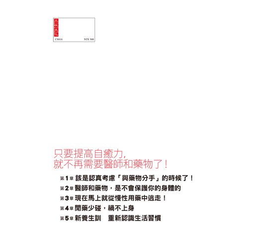 因為藥物是「那種東西」,所以只要不是性命攸關的病,基本上就不要服用。就算服用了,也要限制在短期間之內。要能達到這標準,平常就必須開始打造不需要藥物的身體。所以,從現在開始,好好讀完這本書吧!