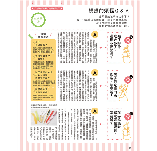 書中還有許多專欄,能讓父母了解這個時期的小朋友跟飲食有關的疑難雜症,並教大家解決的方法。
