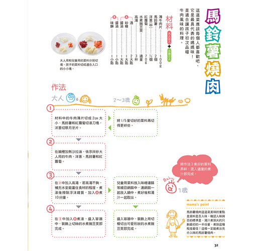 ★我的小孩現在是1歲10個月,我希望有一本書能夠當作料理時的參考。這本書對我們很有幫助。這本書的設計我也很喜歡,食譜大概都只需要4個步驟就完成了,非常簡單又好吃。