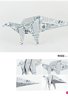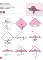 在遠古時代稱霸地球的恐龍,有著各式各樣的品種及體型外貌,雖然已經滅絕許久,但依然是大家心目中的夢幻動物。現在你也可以創作出氣勢磅礡的恐龍摺紙了!只要裁好適合的紙張1~2張,依照摺紙圖的步驟進行,就可以摺出帥氣逼真的作品。不論是大家熟悉的三角龍、劍龍、腕龍,天上飛的無齒翼龍、水裡游的蛇頸龍,還是凶猛猙獰的暴龍、迅猛龍,都能活靈活現地吸引眾人的目光。之後還可以再進行上色、黏著固定,讓作品更加持久美觀吧!