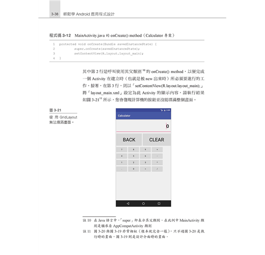 □ Calculator專案:開發一個計算機APP應用程式,帶領讀者學習簡單的使用者介面之設計以及其對應的事件處理。