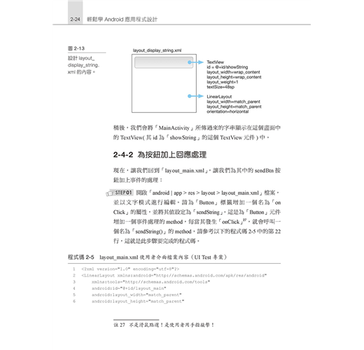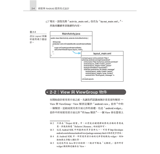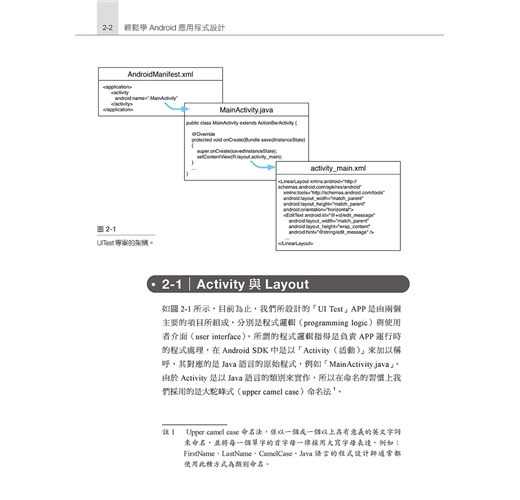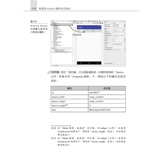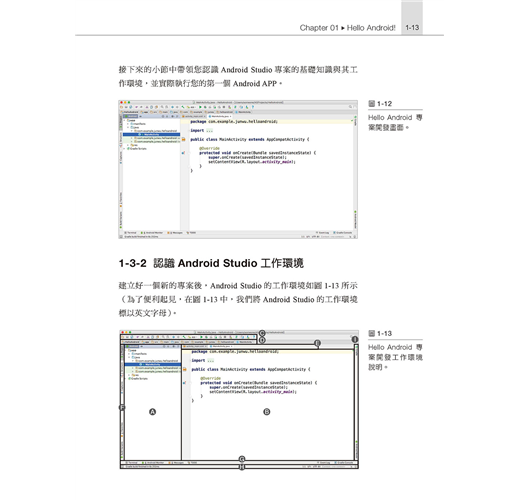 □ Hello Android專案:認識Android Studio的工作環境以及Android APP專案的主要架構,幫助讀者認識Activity與Layout間的關係。
