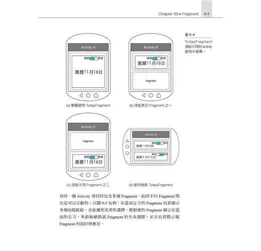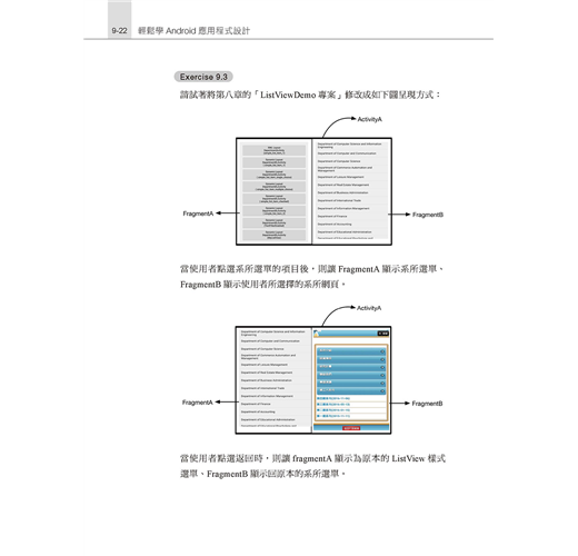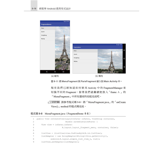 □ FragmentDemo專案:示範說明如何把Fragment嵌入到Activity中,並且在APP執行時進行動態的Fragment切換。