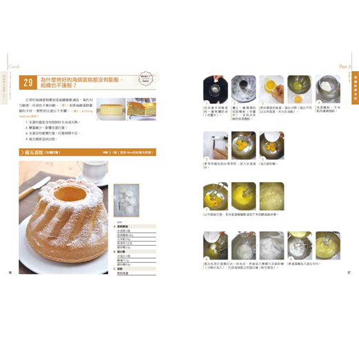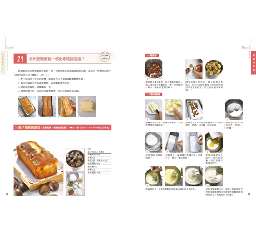 由作者Carol本人親身的經驗,讀者來信提問,加上部落格500,000個留言,歸納整理出180題烘焙新手最常遇到的各式疑難雜症,搭配170款美味簡單的蛋糕甜點實例排解。將20年來日積月累的烘焙經驗,絕不藏私、毫不保留完整地分享給所有讀者!