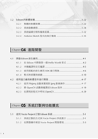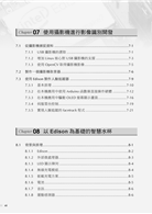 本書是Edison開發技術的中文書,深入淺出地介紹Intel推出的開放原始碼硬體:Edison控制板,介紹其硬體架構、開發環境、開發方法(Arduino IDE、Linux系統)、應用前景,並提供人臉追蹤器、自主導航機器人、小型智慧家居、智慧水杯等開發實例供讀者參考。