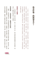 包括:作者獨創的健康飲食最高機密「食物四分法」、健康最底限「生熟1比1」;