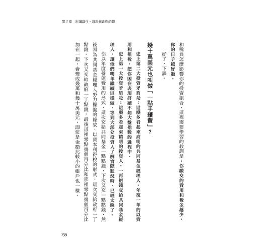 耶!太好了!券商和基金公司也齊聲歡呼,開始向不知情的投資人收取離譜的高額費用。投資人則忙著過自己的日子,沒有時間計算超高費用會對長期財富產生什麼毀滅性的衝擊。