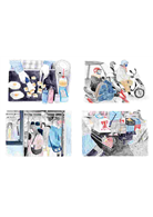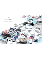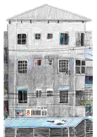 我在台北生活了很久,雖然只租得起便宜地區的公寓,周圍人口密集又有點亂糟糟的,稱不上是怡人的環境,但一直覺得那些鐵皮啊違建啊電線啊鐵窗啊都充滿拼貼感,非常入畫。戶外的房屋街景是參考曾經的住家附近,邊看GOOGLE MAP邊畫的,不知道會不會被大家發現在畫哪裡?