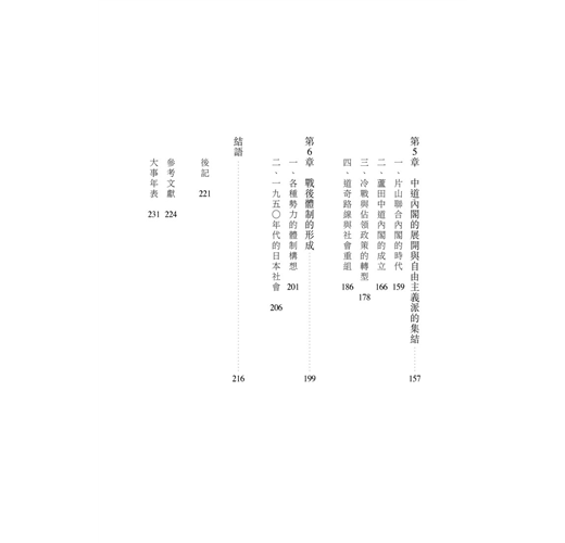 第五章論及片山哲、蘆田均兩任內閣的政策,關於這兩任內閣,以往的分析多以其與GHQ民政局的關係為主,這裡討論的是從協同主義與自由主義相互對抗的構圖中,來認識這兩任內閣所具有的歷史意義和地位。