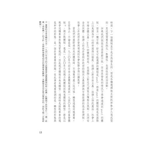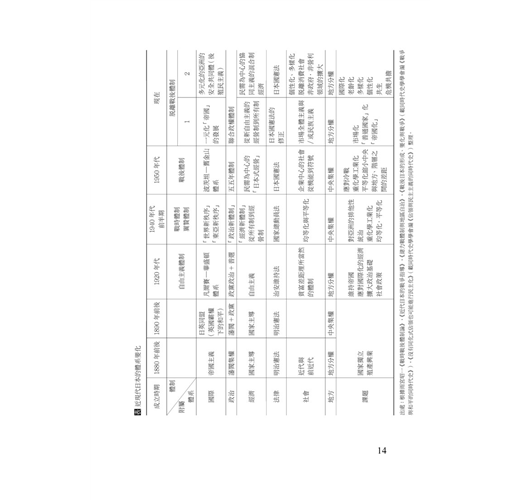 當我們考慮即將到來的體制時,不僅要考慮上述內容,轉型過程同樣重要。目前為止,不論是從一九二○年代的自由主義體制過渡到一九四○年代的翼贊體制、總力戰體制,還是一九五○年代從總力戰體制到戰後體制的轉型,都是以戰爭這種軍事形態來實現的。因此現有體制在未來轉型、過渡時是採取軍事的還是和平的形態,是一個非常重要的問題。在此筆者還要強調的是,轉型的形態與