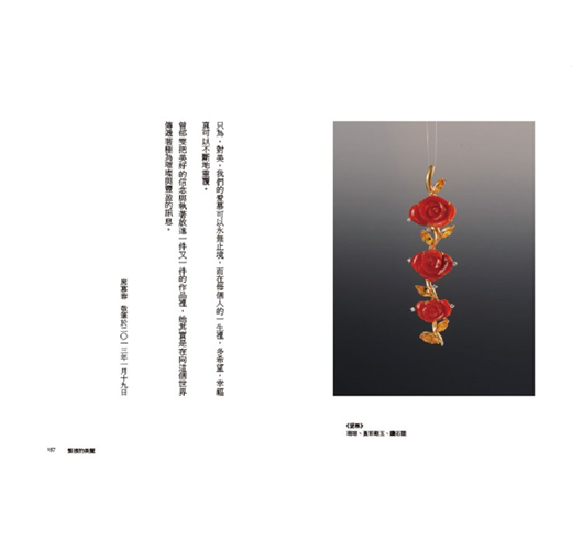 郁雯姊將這些寶石的故事娓娓道來,竟已不只是談石了,而是在談人生的取與捨,對於美好事物的執著,以及永恆的浪漫追求。這不禁讓人想到〈紅樓夢引子〉一曲所云:「開闢鴻蒙,誰為情種?都只為風月情濃。」寶石從此有了通靈的生命,也成就了一個有情多情的天地。