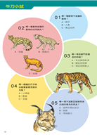 設有「動物小百科」單元,特別介紹貓科動物的構造與演化,以及貓、豹、猞猁、獅子、老虎等貓科動物的超炫常識,讓小朋友有系統的學習。