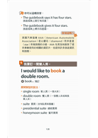 首先,除了具備了基本的英語會話能力外,更要知道什麼場合說什麼樣的話、該如何說以及了解什麼才是美式口說英文。因此,本書分成「生活」、「旅遊」、「辦公室」與「商業」四大主題,內容包括打招呼、問路、餐廳飯店、觀光購物、面試、電話、開會簡報英語等共 20 個情境單元。每個單元下列出該情境最常用到的實用句,總共約 800 句以上。當你身處與這些主題相同情境時,這些句子就能幫你輕鬆應對。此外,每個實用句下方會補充相關單字和背景知識,讓你的對話內容更為豐富,談話更有自信。除了補充相關單字和背景,還會補充和此句相關的說法和對方可能的回答,必要時還會有範例對話,將所有可能的狀況沙盤演練一番,讓你臨時缺的那句話馬上列出來讓你知道。