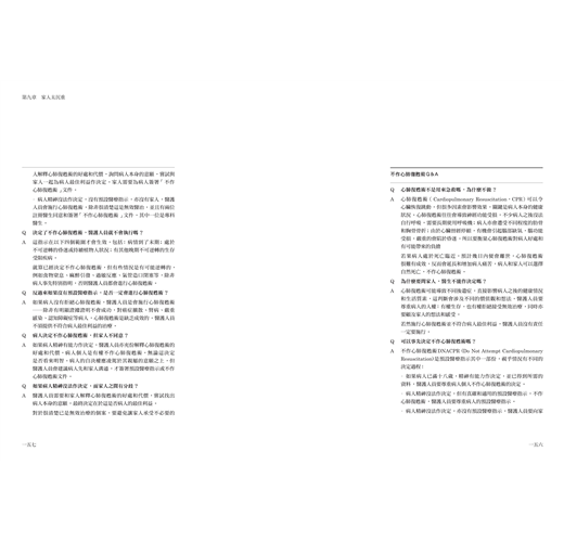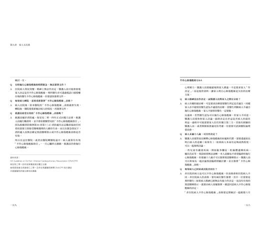 醫療界因而引進「不施行急救意願書」(Do Not Resuscitate DNR),在香港更仔細寫明是「不作心肺復甦術指引」( Do Not Attempt Cardiopulmonary Resuscitation, DNACPR),讓病人和家人選擇,並盡量預先表達意願。
