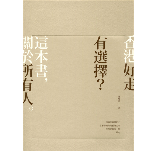 教人保持健康的書多得很,病了也有大量求醫的資訊,只是當積極治療去到盡頭,如何可以減低各種不適,有尊嚴地走完最後一程?有些「選擇」昔日並不存在,惟隨著醫學昌明科技進步現在心臟停止跳動可以打「強心針」、肺部衰竭可以用「人工肺」、無法進食可以用「導管餵飼」……今日病人可以有不同想法、不同意願,可是也需要了解有什麼選擇才能作決定。而當這些決定是為家人而作,尤其艱難。